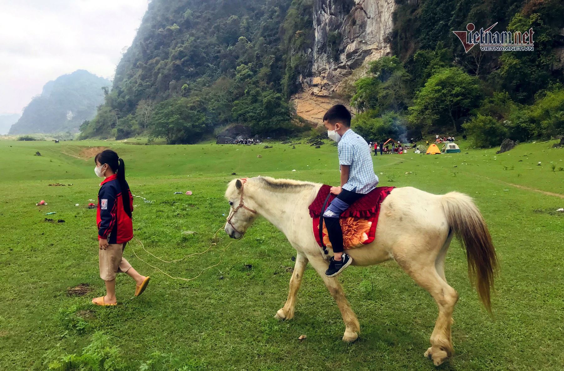 Không còn cáu gắt, không còn tranh nhau chiếc điều khiển tivi. Lâu lắm, phải lâu lắm rồi mới thấy những đứa trẻ cười tươi, cười đúng tuổi giữa thiên nhiên mây trời như vậy. Tiếng cười giòn rồi tan nhẹ vào mây gió, hòa quyện vào tiếng suối róc rách. Đứa lớn bình thường ở nhà vẫn giành ăn từng chút với em, nay tôi lặng lẽ nhìn nó nhường hộp sữa mình thích cho 'cô gái lớp 3 xinh tươi' đi cùng đoàn, chỉ vì cô ấy uống không quen sữa khác. Rồi chúng chạy ra chơi với đàn bò, chỉ trỏ vào từng con, lên thực đơn: 'con này nướng', 'con này luộc'... Tiếng hò hét vang vọng cả vào từng ngóc ngách núi đá vôi bên cạnh.