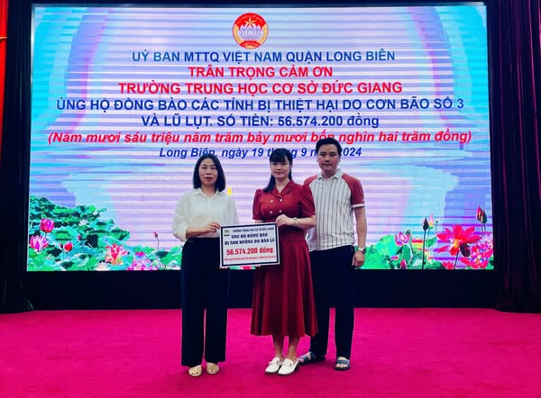 Trân quý tấm lòng hảo tâm của các Thầy giáo, Cô giáo và các bậc Cha mẹ học sinh trường THCS Đức Giang với đồng bào miền Bắc bị lũ lụt sau cơn bão Yagi vừa qua!