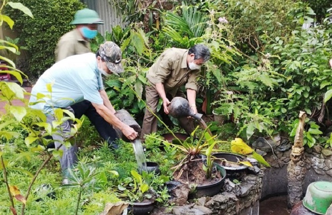 Người dân tham gia công tác vệ sinh môi trường diệt bọ gậy