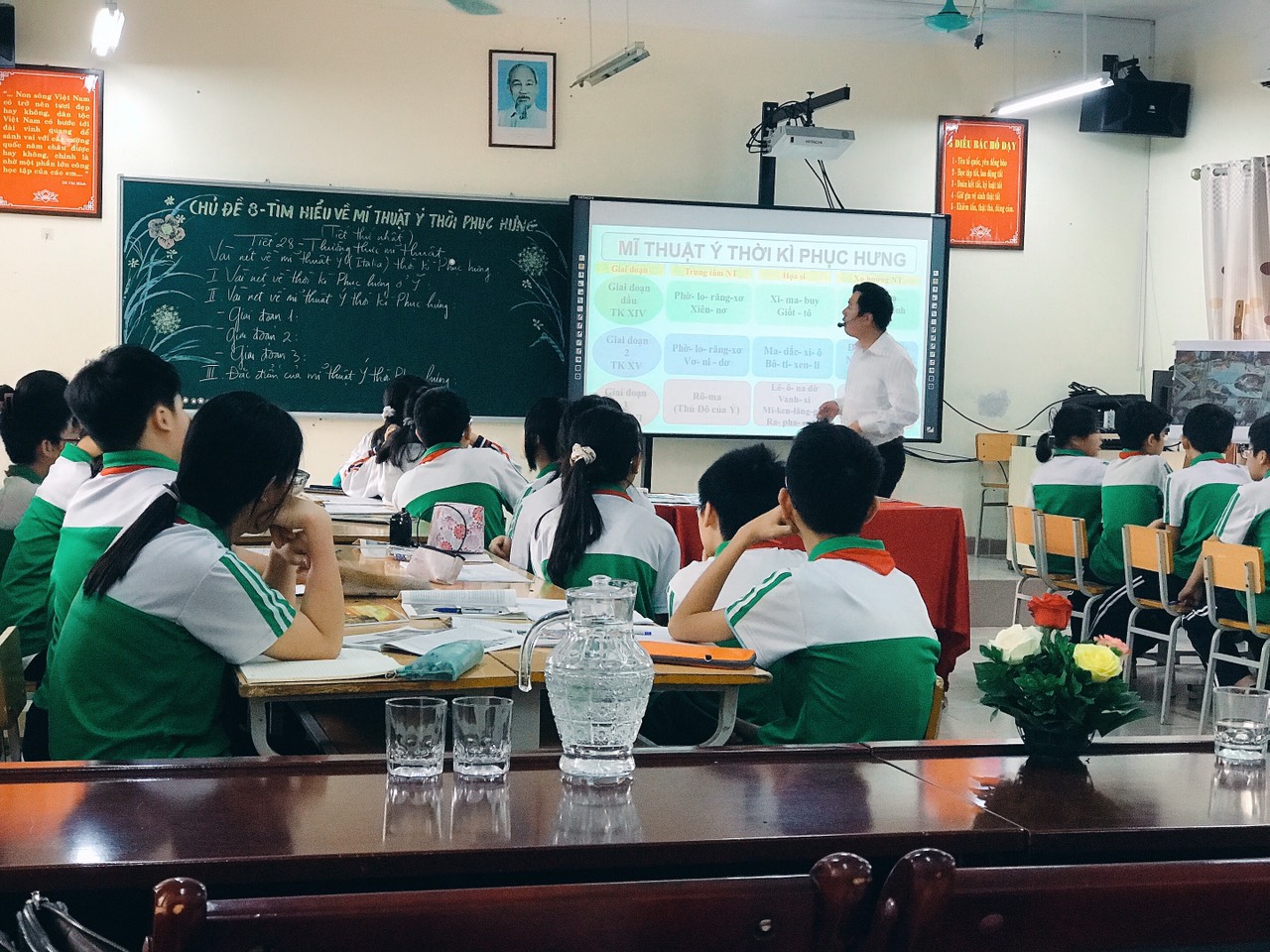 Ngày 24/3/2021, thầy Nguyễn Huy Long đã thực hiện tiết dạy “Tìm hiểu mỹ thuật thời phục hưng” cho học sinh lớp 7. Trong tiết học, đồng chí đã phát huy được năng lực và tư duy sáng tạo cho học sinh khi tìm hiểu mĩ thuật thời kì phục hung. Học sinh được làm việc đội, nhóm, di chuyển xung quanh lớp,trao đổi khám phá nội dung của bài học một cách chủ động và áp dụng vào cuộc sống thực tiễn.