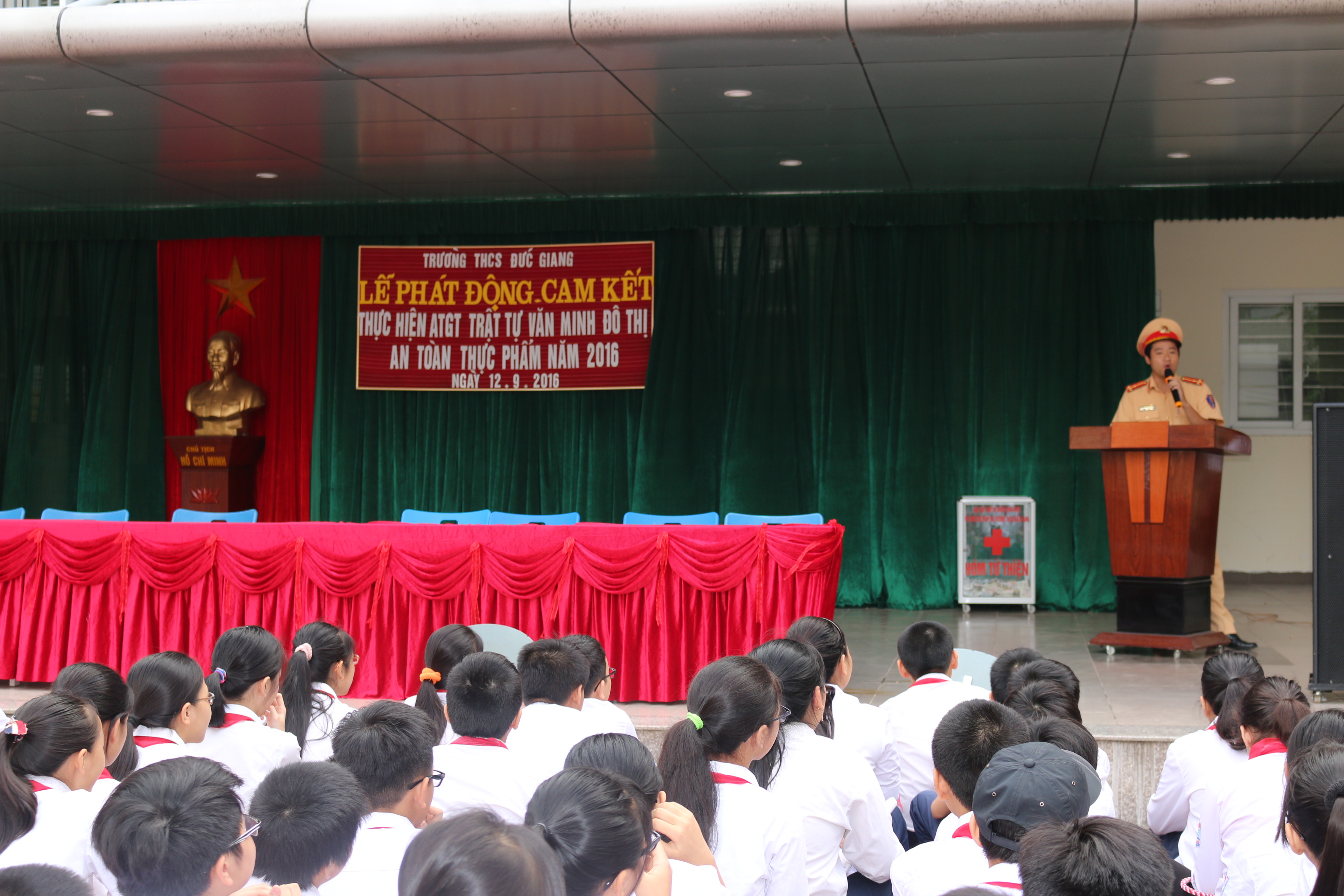 Tại buổi phát động, đ/c Nông Dũng – cục CSGT đã phát động, kêu gọi cán bộ, giáo viên, nhân viên và học sinh toàn trường "Tham gia giao thông văn minh và an toàn”, thực hiện tốt các chủ trương, chính sách của Đảng và pháp luật của Nhà nước về an toàn giao thông; đồng thời đại diện các tổ chức, đoàn thể, các lớp trong nhà trường ký cam kết thực hiện tốt về ATGT, trật tự văn minh đô thị năm học 2016-2017.