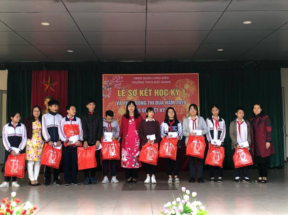 Sau đó cô Nguyễn Thị Thanh Huyền – phó hiệu trưởng nhà trường đã thay mặt cho Ban thi đua nhà trường tóm tắt kết quả phong trào thi đua của thầy và trò trong năm học 2018-2019. Học kì vừa qua, trường THCS Đức Giang đã đạt được nhiều thành tích tốt đẹp: Nhà trường đã xây dựng tập thể đội ngũ cán bộ, giáo viên đoàn kết nhất trí, đội ngũ cán bộ quản lý, công đoàn nhà trường năng động, sáng tạo, đổi mới, bám sát triển khai có hiệu quả nhiệm vụ năm học. Đặc biệt nhà trường đã tập trung chỉ đạo đổi mới phương pháp nâng cao chất lượng dạy và học. Học sinh nhà trường được học tập theo hướng phát triển năng lực học sinh, bám sát những thay đổi về thi cử do Sở giáo dục Hà Nội mới công bố. Nhà trường cũng khẳng định những thành tích mà thầy và trò đạt được là học thật - thi thật.
