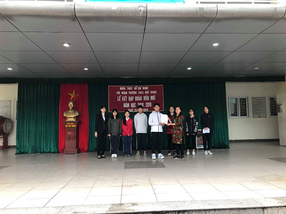 Đồng thời, tạo cơ hội cho các bạn đội viên đã trưởng thành trong quá trình học tập, rèn luyện, tu dưỡng bản thân có nhiều đóng góp cống hiến cho phong trào Thanh thiếu niên được đứng vào hàng ngũ của Đoàn TNCS Hồ Chí Minh. Được sự đồng ý của Ban chấp hành đoàn phường Đức Giang, sáng ngày 25 tháng 3 năm 2019, Đoàn trường THCS Đức Giang long trọng tổ chức buổi lễ kết nạp Đoàn viên mới cho các đội viên ưu tú.